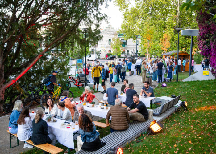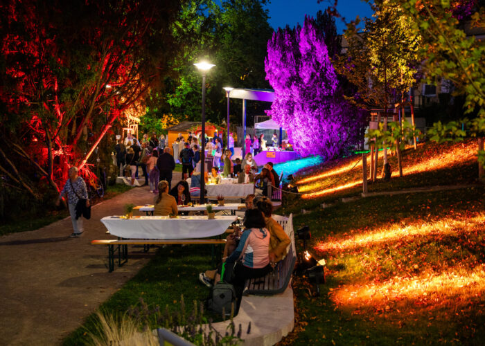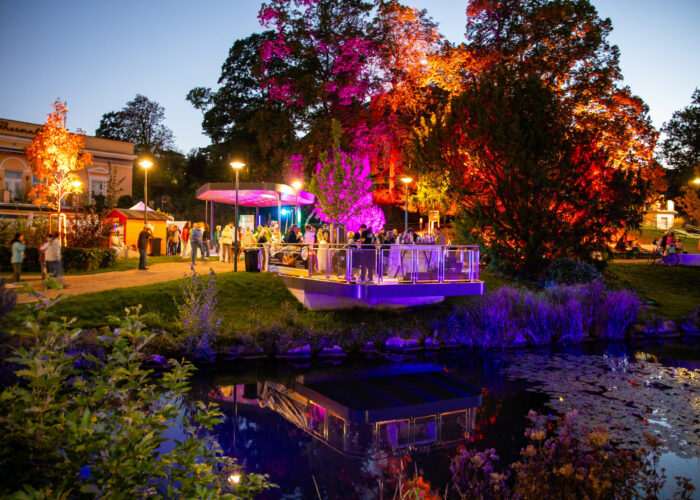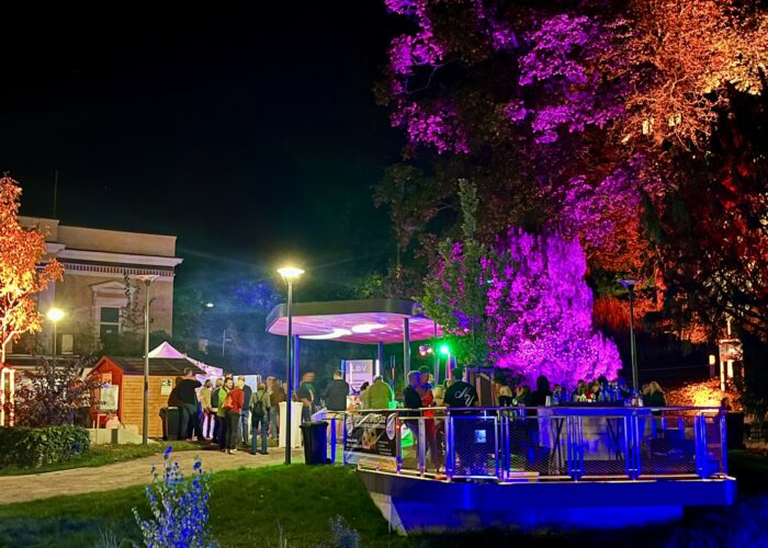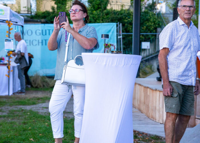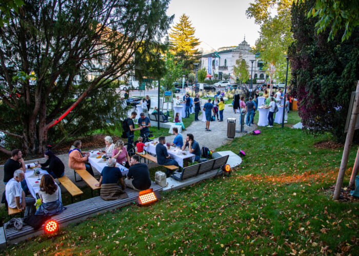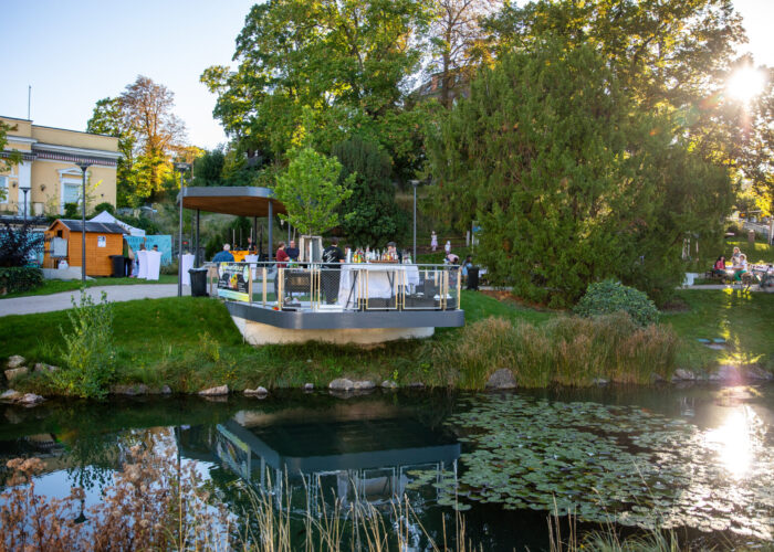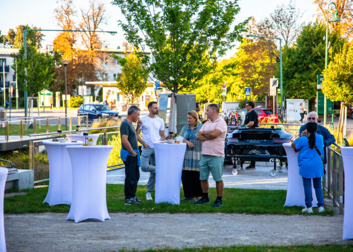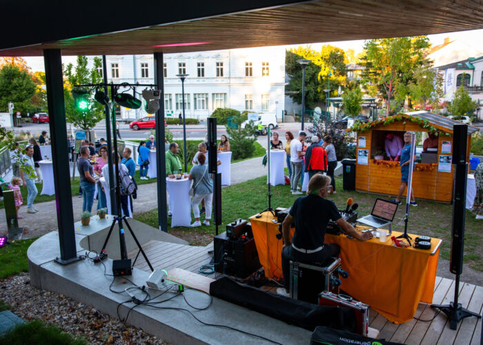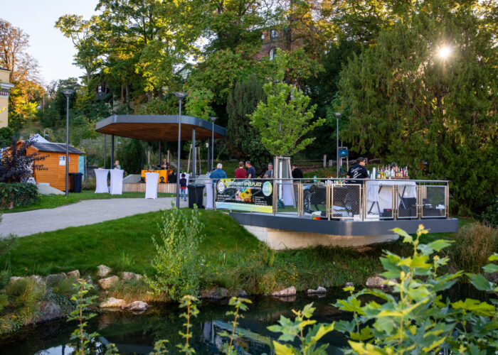 Bereits beim Eintreffen war die besondere Atmosphäre spürbar: goldene Herbstfarben, chillige Musik unter freiem Himmel und ein Park voller Menschen, die den Arbeitstag in geselliger Runde ausklingen ließen. Für den musikalischen Rahmen sorgte der Badener Wolfgang Hanss (alias DJ Bootsy). Mit seinem abwechslungsreichen Mix brachte er das Publikum in